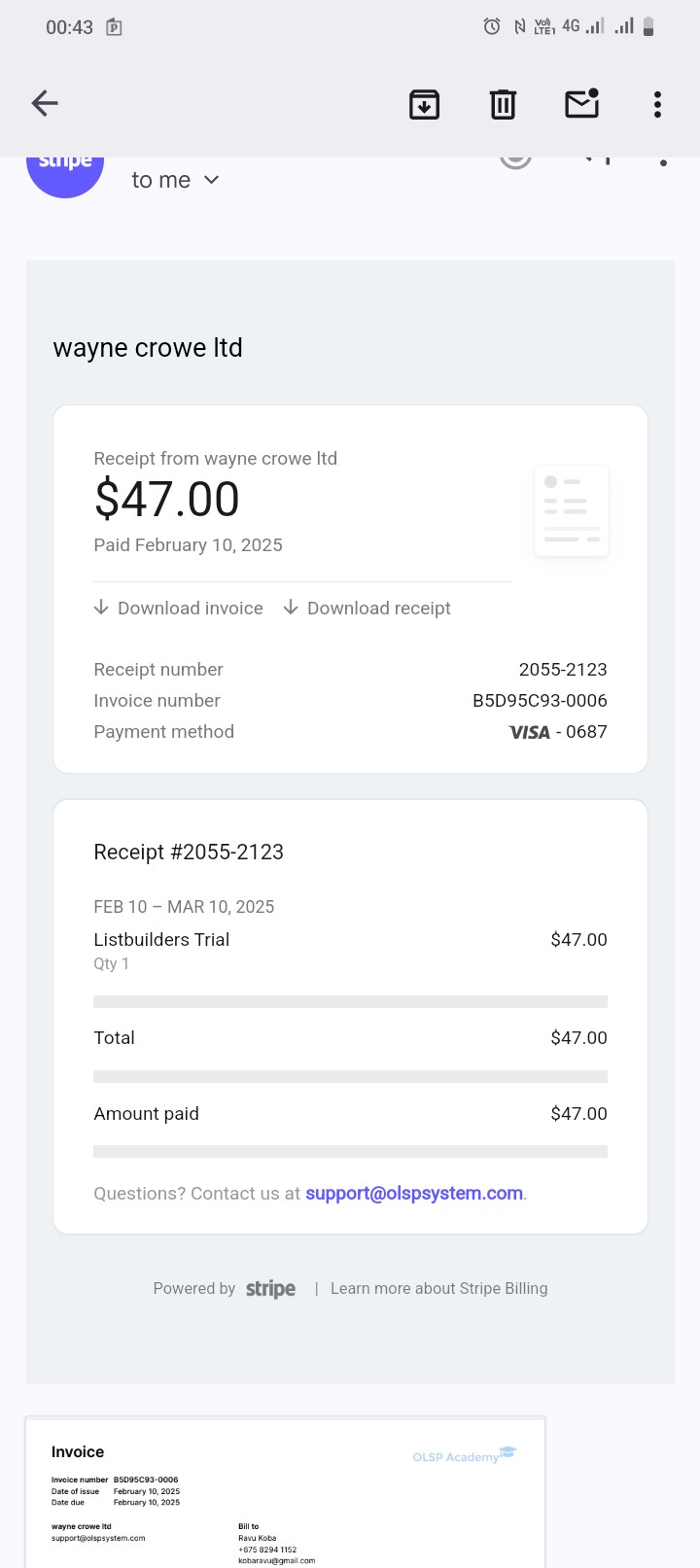 This is a friendly reminder that your wayne crowe ltd subscription for Mega Messenger Monthly OTO will automatically renew on February 15, 2025.