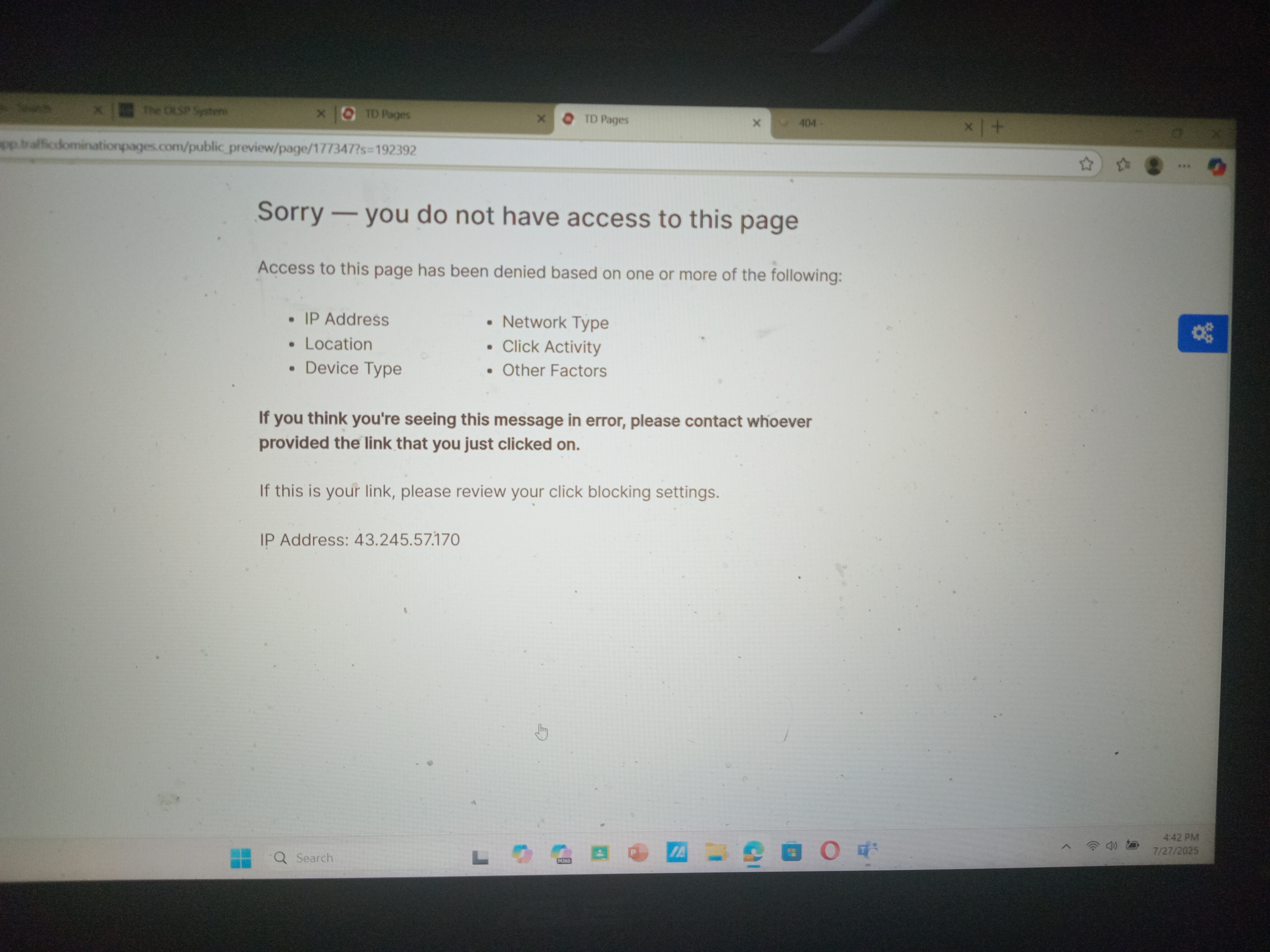 TD page access qas denied